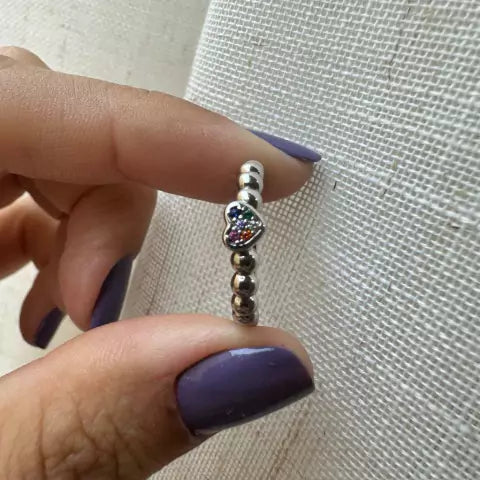 Com detalhes em bolinhas e coração colorido. 6 Pedras coloridas.