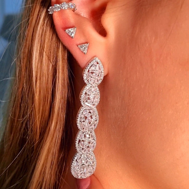 Piercing fake confeccionado em Prata 925 com banho de ródio, com 5 pedras de moissanite de 2 mm, totalizando 0,75 quilates.