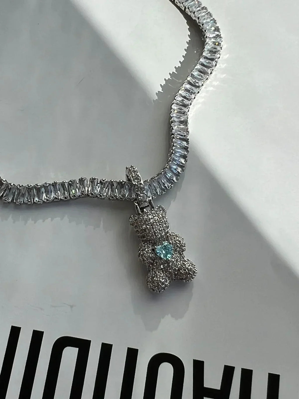 Pingente Ted com Zircônia Cristal e Água-marinha (Abre a Argola) em Prata 925 Banho de Ródio Branco